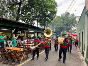 Apresentações são gratuitas, alegrando o público e comerciantes Em celebração ao Natal, bandas itinerantes se apresentam aos finais de semana...