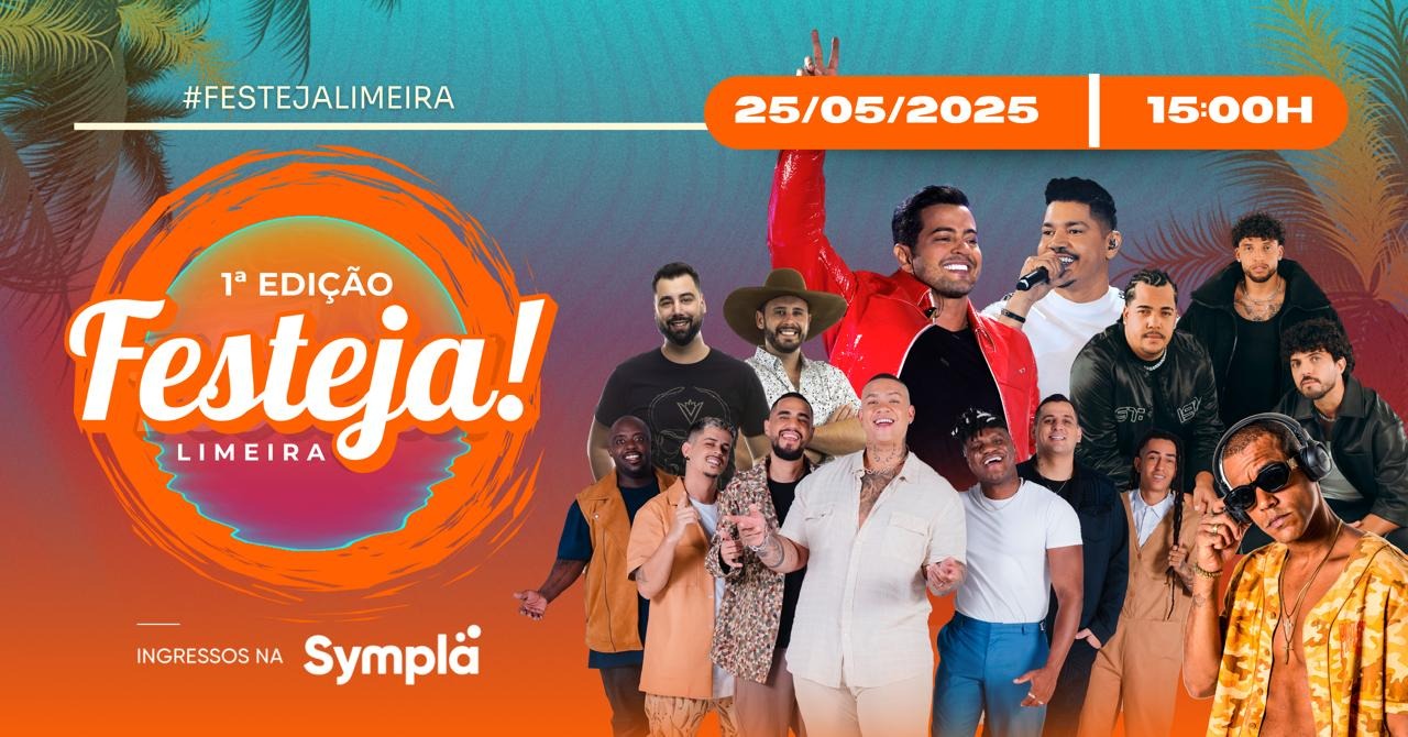 O 1º Festeja Limeira acontece no dia 25 de maio, a partir das 15h, no Multiespaço Nações (Rodovia Deputado Laercio Corte, 4.500, Limeira). O evento reunirá o melhor do sertanejo, pagode e funk, com apresentações de Henrique e Diego, Eduardo e Rafael, Grupo Di Propósito, Grupo Solução e o ator e DJ Marcello Melo Jr.