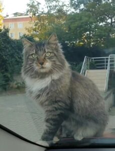 Gato aparece em cima de carro de mulher a impedindo de sair para trabalhar, então ela resolve tomar uma atitude