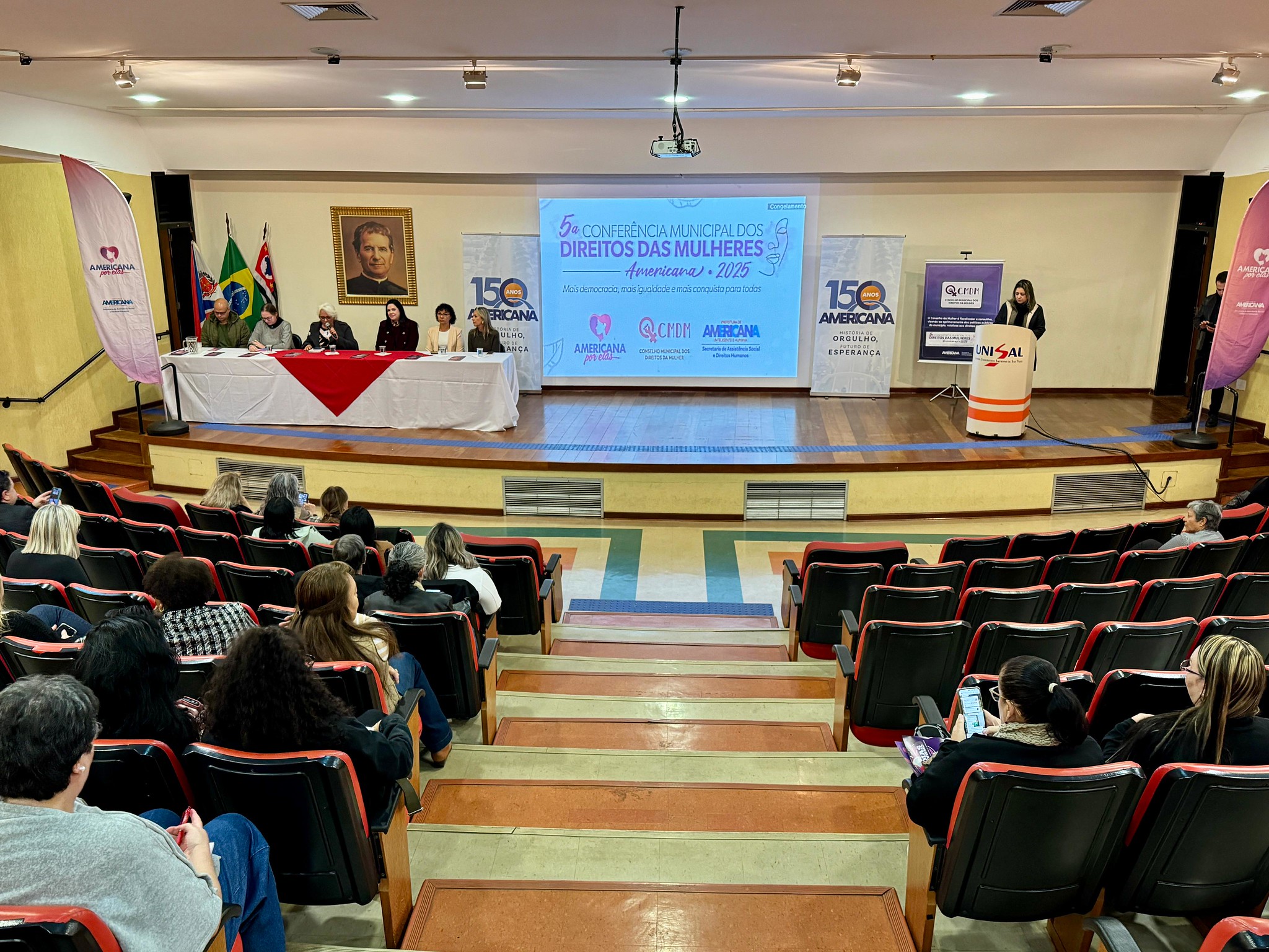 Cerca de 130 pessoas participaram da 5ª Conferência Municipal dos Direitos das Mulheres, realizada nesta sexta-feira (30), no campus Maria Auxiliadora do UNISAL – Centro Universitário Salesiano. O evento foi promovido pela Prefeitura de Americana, por meio da Secretaria de Assistência Social e Direitos Humanos (SASDH), Conselho Municipal dos Direitos da Mulher (CMDM), programa Americana por Elas e parceiros.