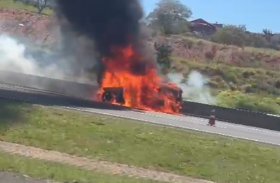 Falha mecânica teria provocado o fogo; ninguém ficou ferido, mas o trânsito ficou congestionado no trecho administrado pela Rota das Bandeiras
