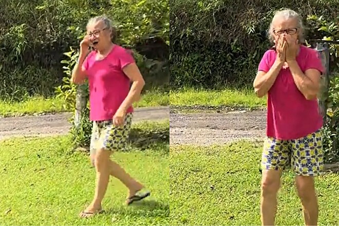 Ao ver a cena, a idosa se emocionou imediatamente!