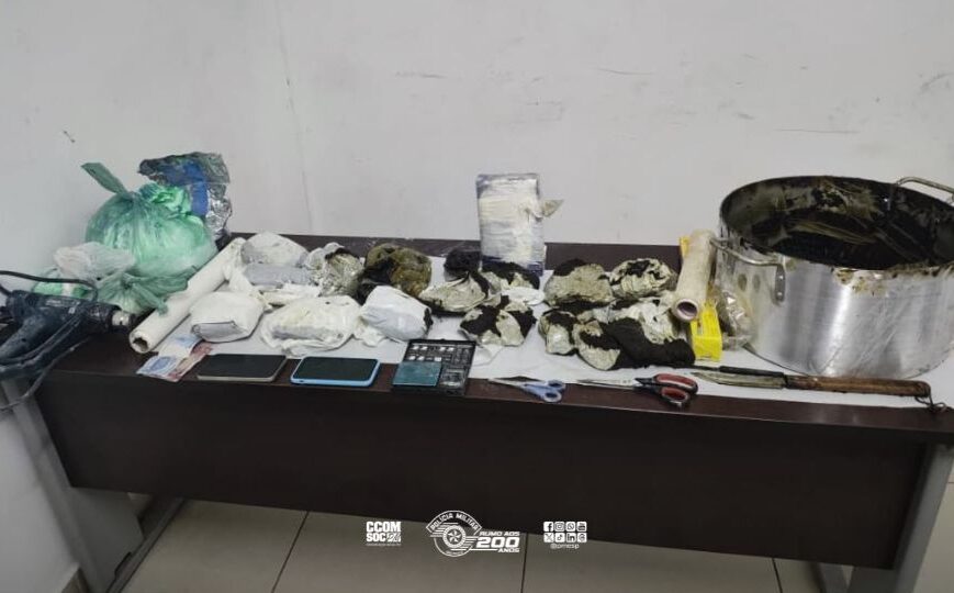 No local, foram apreendidos maconha “dry” e pasta base de cocaína, além de diversos apetrechos empregados no refino, fracionamento e acondicionamento das substâncias ilícitas, caracterizando a atividade de tráfico no imóvel.