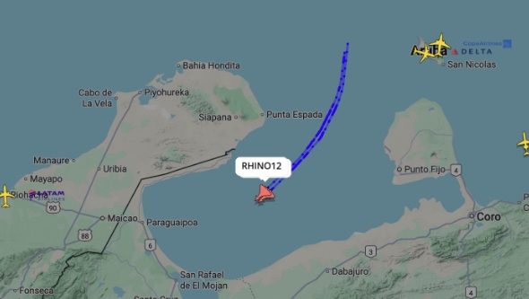 Dois caças F-18 norte-americanos foram registrados sobrevoando as águas do Golfo da Venezuela na terça-feira (9), segundo dados do site especializado em rastreamento de voos FlightRadar24. O sobrevoo ocorreu em meio ao aumento da pressão militar dos Estados Unidos na região do Caribe.