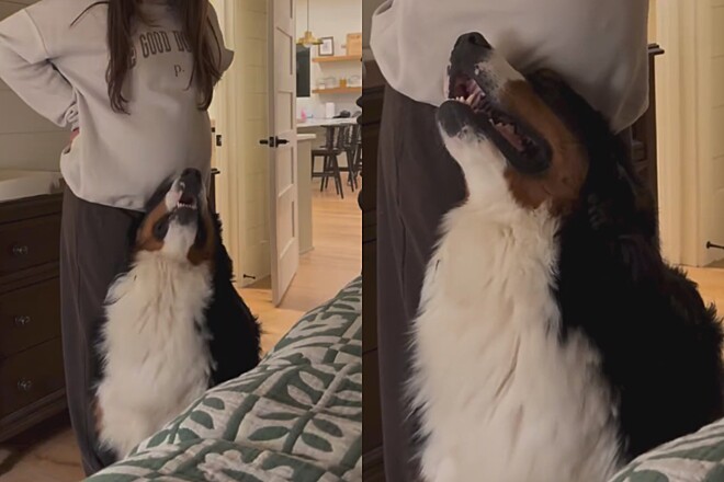 Durante a gravidez, enquanto interagia com o cão, ela perguntou em tom de brincadeira: