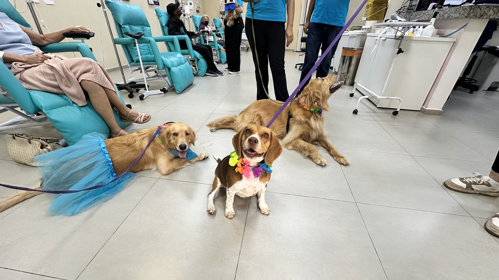 O Hospital Municipal Dr. Waldemar Tebaldi e a Unacon (Unidade de Alta Complexidade em Oncologia), em Americana, receberam a visita dos cães terapeutas do projeto Patas que Curam, em uma ação especial de Carnaval que transformou o clima das alas e corredores das unidades nesta terça-feira (17). Oito cães – Thor, Margot, Manu, Sky, Kimi, Duke, Zaia e Phill – das raças Golden Retriever, Shih Tzu e SRD, que têm perfil dócil e são treinados para ambientes hospitalares, participaram da visita, proporcionando alegria, acolhimento e momentos de leveza em meio à rotina hospitalar.