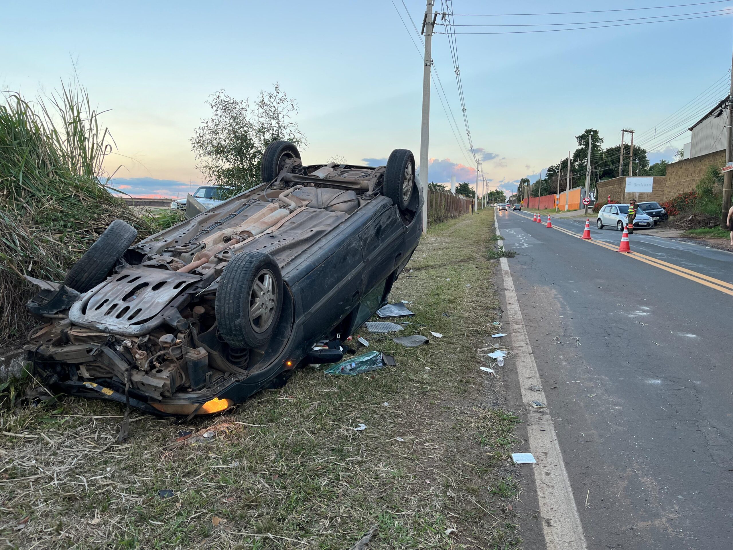 Com o impacto, a Zafira perdeu o controle, saiu da pista e capotou. No veículo estavam um casal e a filha, de 23 anos, moradores do bairro do Pinhal. A jovem sofreu escoriações e um corte profundo na perna.
