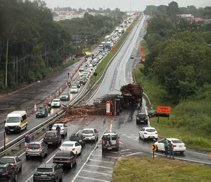 Devido ao tombamento, as faixas 1 e 2, entre os kms 168 e 169, foram totalmente interditadas, e os motoristas foram desviados por rotas alternativas. O congestionamento já provoca, em média, uma hora de atraso para quem trafega pela via.