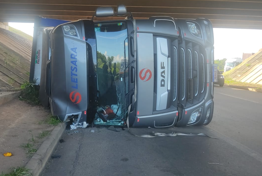 No final da tarde desta segunda-feira (20), uma carreta tombou com sete toneladas de ferro na marginal do km 67 da rodovia Santos Dumont, na entrada do bairro Cidade Singer, em Campinas (SP).