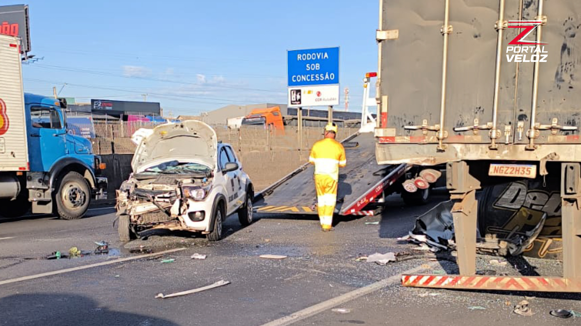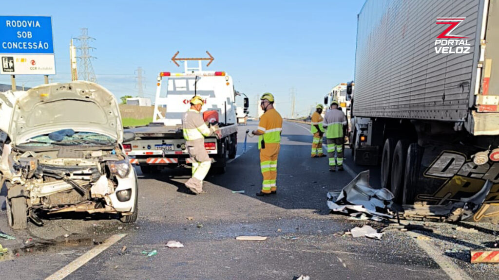 Um carro bateu na traseira de uma carreta na manhã desta terça-feira (23), na altura do km 108 da Rodovia Anhanguera (SP-330), no sentido Norte, em Sumaré (SP).