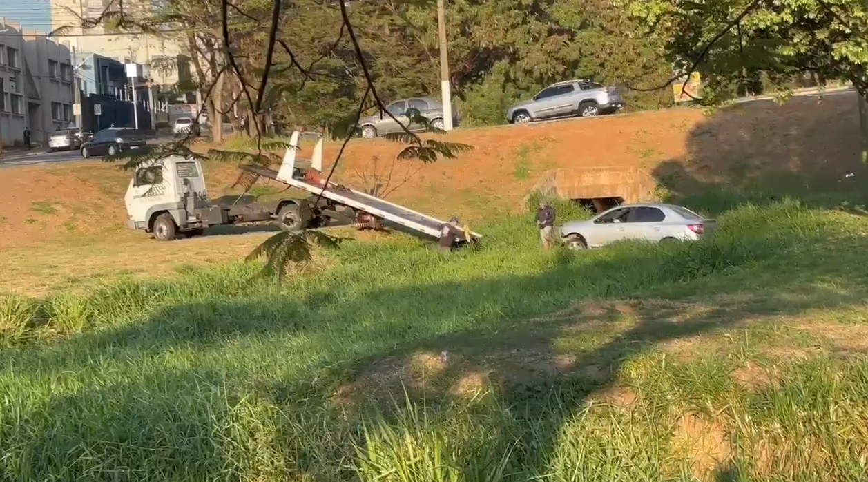 Segundo informações apuradas, o motorista de um Renault Logan prata trafegava pelo Anel Viário quando, por razões ainda desconhecidas, ao acessar a rotatória, acabou caindo no córrego que corre às margens da via.