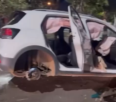 Duas jovens ficaram feridas em um grave acidente de trânsito ocorrido na noite da última sexta-feira (25), na Avenida Engenheiro Antônio Francisco de Paula Souza, no Jardim Gabriel, em Campinas (SP). O veículo, um T-Cross branco, colidiu violentamente contra uma árvore e invadiu a calçada, lançando partes do carro, como motor e suspensão, para longe com o impacto.