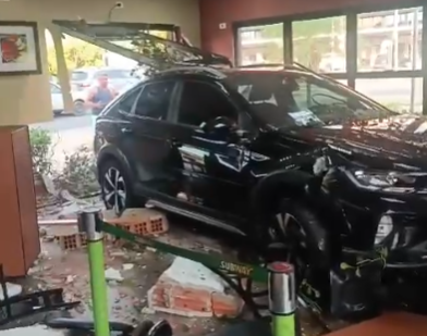 Segundo informações da PM, no local, constatou-se que um veículo modelo Nivus havia invadido uma unidade da rede Subway, ficando totalmente dentro do estabelecimento.
