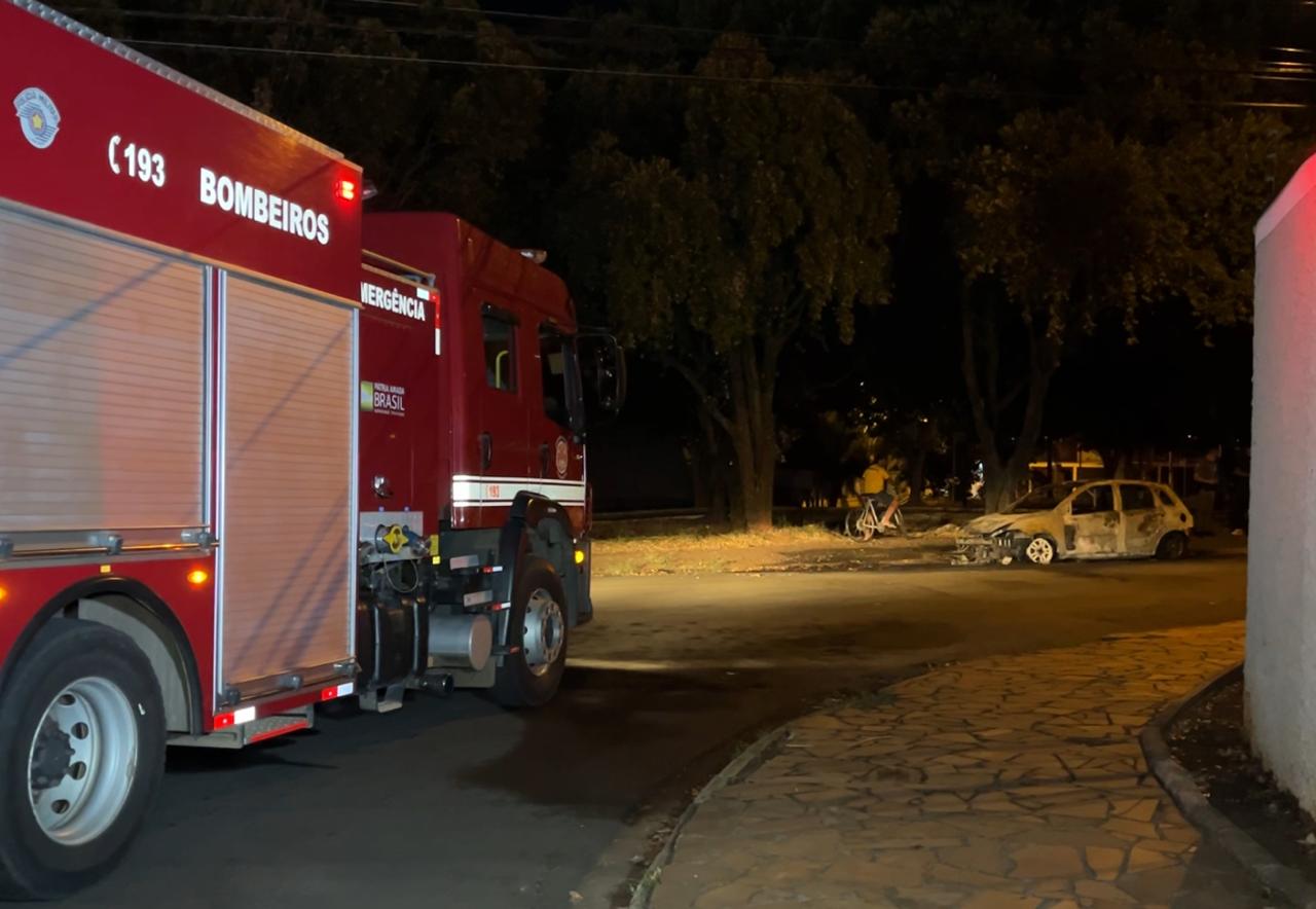 Um Ford Fiesta foi completamente destruído após pegar fogo na noite desta sexta-feira (29), na Rua Félix José Monteiro, no Jardim Santo André, em Limeira (SP).