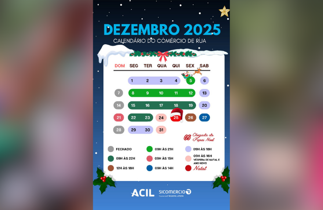 A Associação Comercial e Industrial de Limeira (ACIL) anunciou oficialmente os horários especiais de funcionamento do comércio para o período de fim de ano. A iniciativa tem como objetivo oferecer mais conforto, segurança e comodidade aos consumidores, além de apoiar os comerciantes em uma das épocas mais movimentadas do calendário. Ao longo de dezembro, as lojas do centro e corredores comerciais de Limeira terão expediente ampliado.