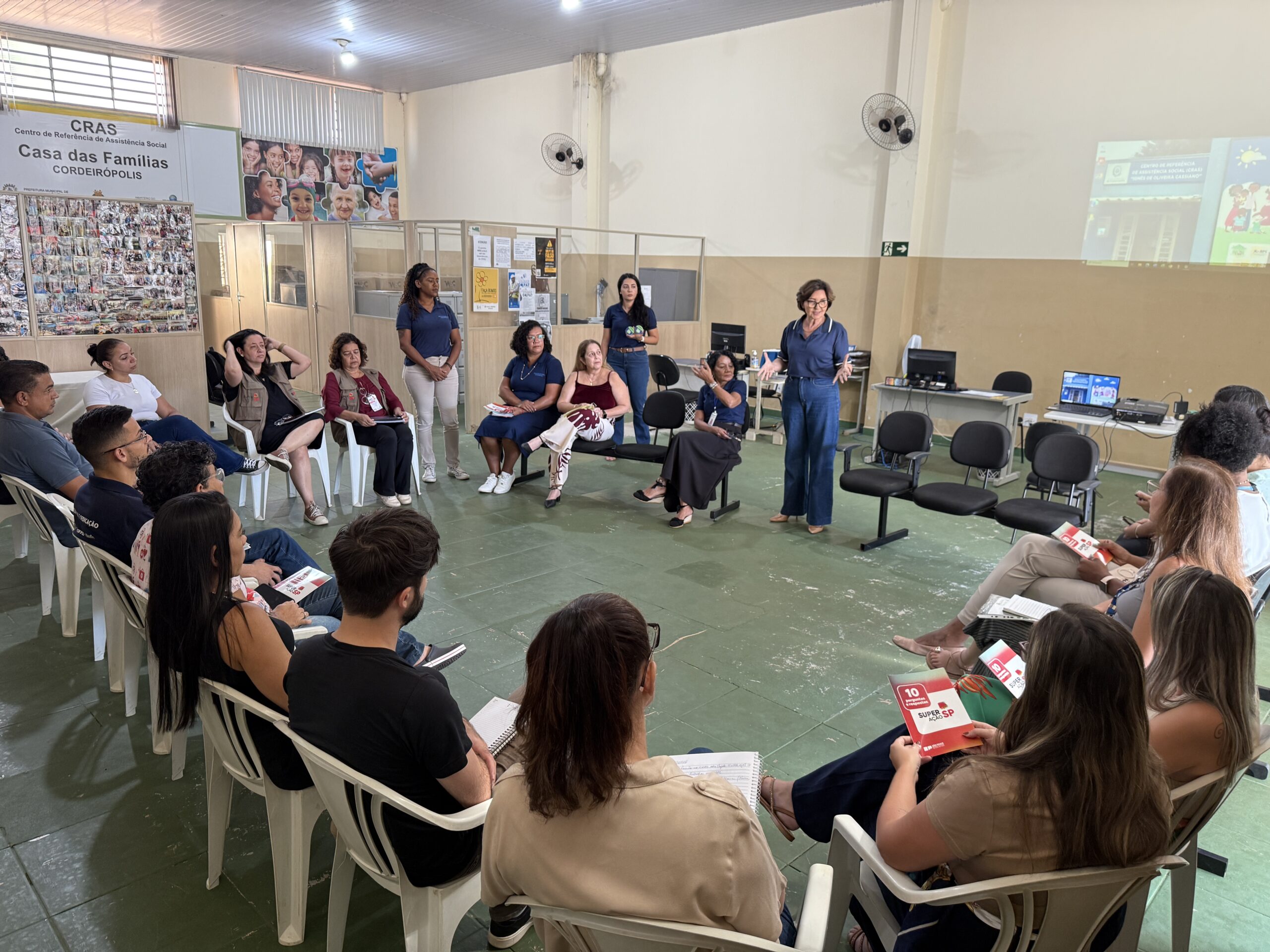 A prefeita Cristina Saad participou, na semana passada, no Cras do Jd. Eldorado, da apresentação do programa SuperAção, do Governo Estadual, que visa permitir que famílias vulneráveis tenham oportunidades mais efetivas para superar a pobreza. Estiveram presentes membros da rede intersetorial do território e do comitê do programa, além do vereador Rozimar Rodrigues.