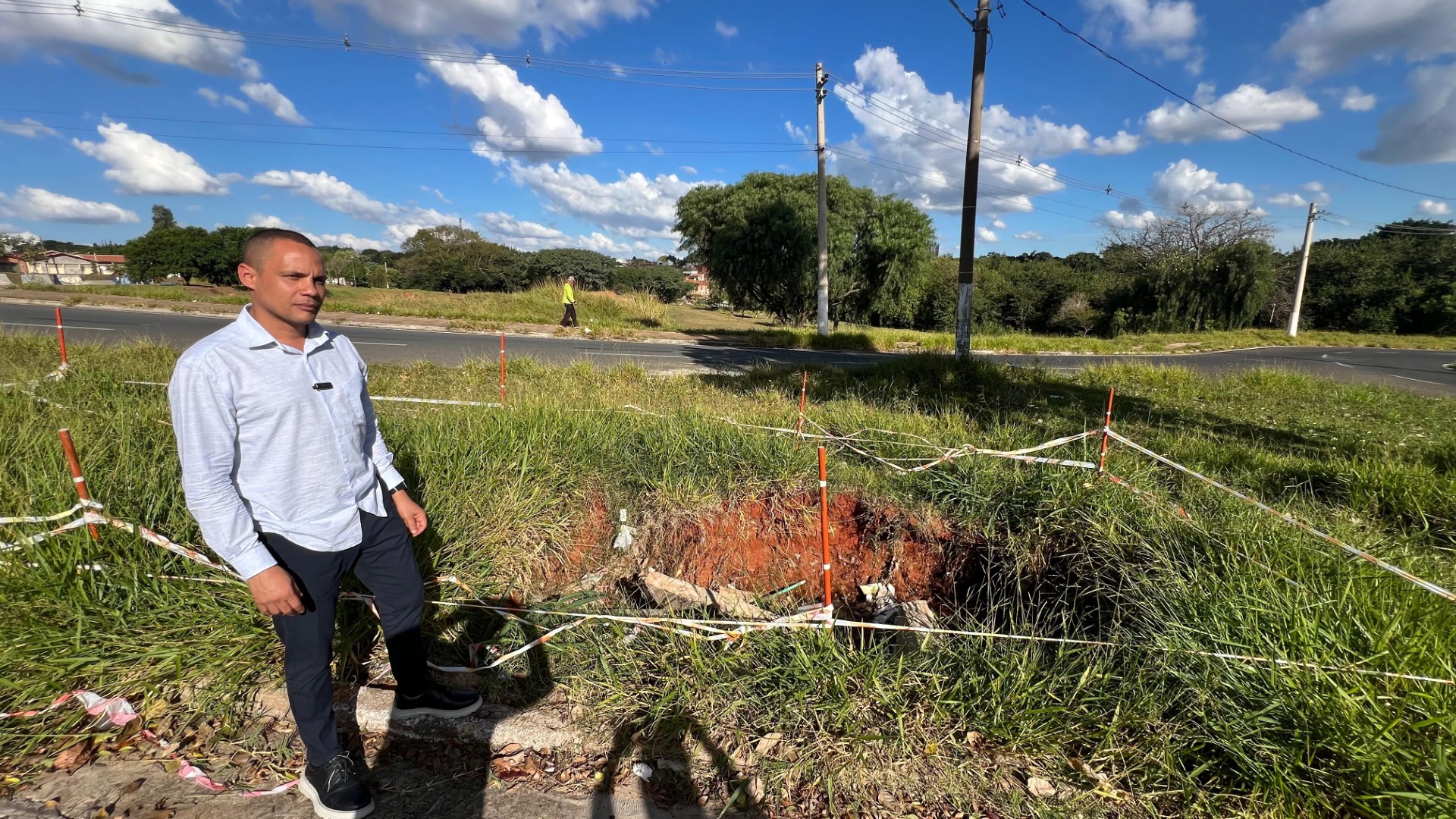 O vereador e presidente da Câmara de Limeira, Everton Ferreira, informou que esteve nesta semana na Avenida João Amaral Gama para apurar denúncia de uma cratera que tem causado transtornos e colocado em risco a segurança de quem passa pela região. O buraco, de grande proporção, fica no canteiro central que liga os bairros Nossa Senhora das Dores, Abílio Pedro e Chácara Antonieta — uma área com grande movimentação de veículos e pedestres.