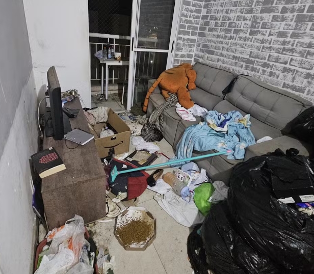 Ao chegarem ao endereço, os policiais não obtiveram resposta dos moradores e decidiram entrar no apartamento. Segundo a corporação, o cenário encontrado era de extremo descuido: lixo acumulado em todos os cômodos, banheiros sujos, louça suja na pia e alimentos podres na geladeira.
