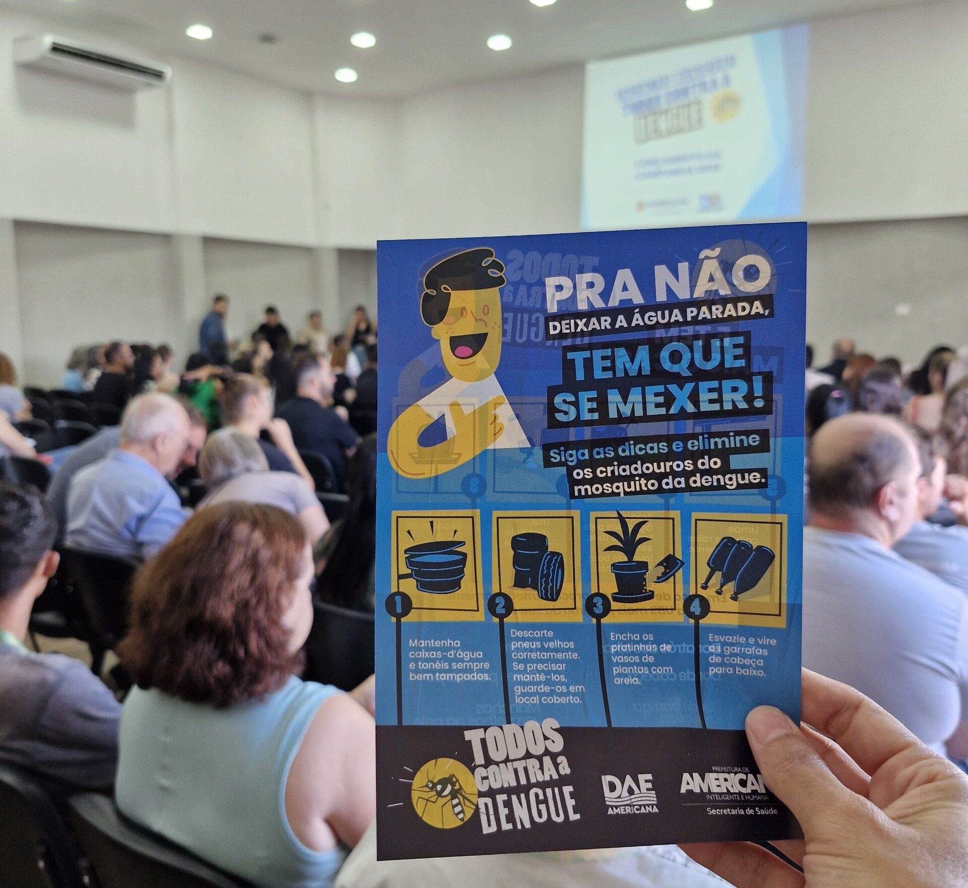 Para intensificar o combate à dengue, a Prefeitura de Americana, por meio da Secretaria Municipal de Saúde, lançou a campanha “Todos contra a Dengue – Para não deixar água parada, tem que se mexer!”.