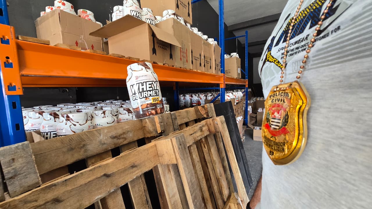 De acordo com a Polícia Civil, o local funcionava como um centro clandestino de distribuição de produtos como whey protein e creatina, que eram adulterados e revendidos principalmente por plataformas online como Shopee e Mercado Livre.