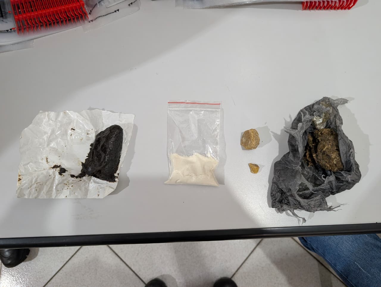 No total, a ocorrência resultou na apreensão de 66 gramas de haxixe, 113 gramas de maconha tipo flor, 34 gramas de maconha prensada, 23 gramas de cocaína e 14 gramas de crack, além de dois celulares e um veículo Celta.