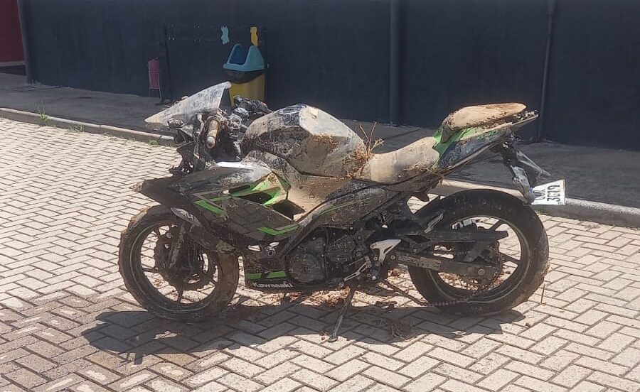 Corpos foram encontrados em córrego ao lado de Kawasaki Ninja; acidente ocorreu possivelmente durante a madrugada chuvosa
