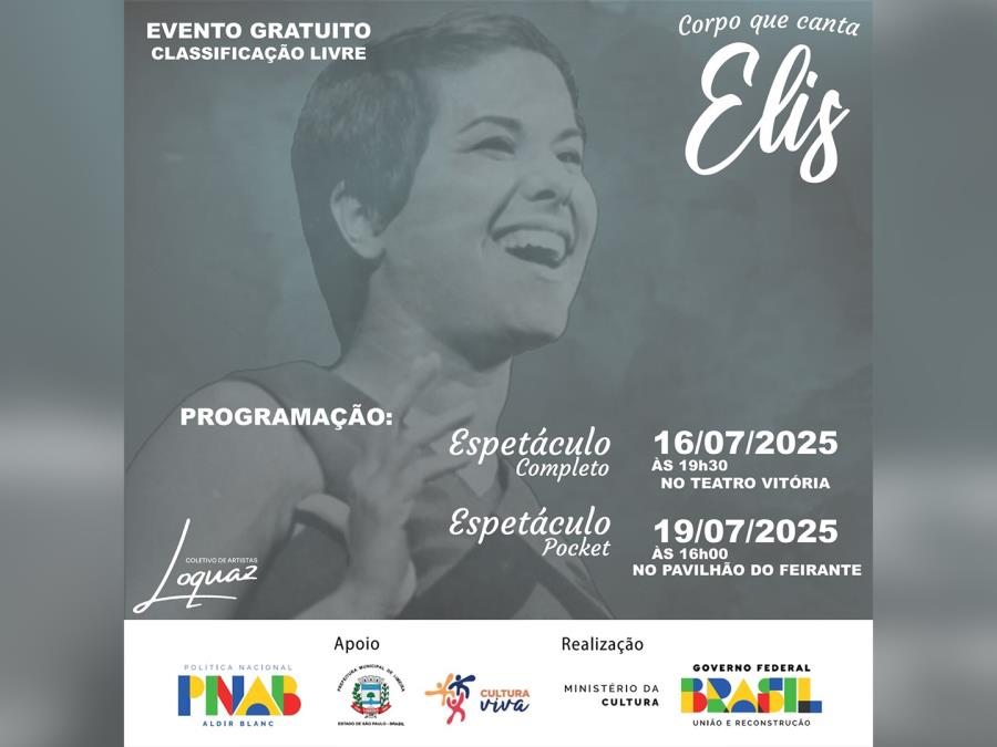 O Loquaz Coletivo de Artistas Independentes realizará, esta semana, o espetáculo “Corpo que Canta Elis”, que será apresentado gratuitamente nos dias 16 e 19 de julho. O evento é uma homenagem, por meio da linguagem da dança, à trajetória musical de Elis Regina, uma das maiores vozes da música popular brasileira. A iniciativa busca revitalizar a importância cultural da obra de Elis Regina, conectando novas gerações ao legado da cantora.