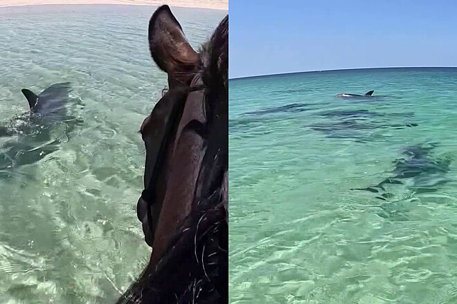 A natureza, às vezes imprevisível, é também surpreendente. No dia 5 de março, Kate publicou um vídeo no Instagram em que pelo menos cinco golfinhos nadam ao lado de sua égua, criando uma cena que muitos consideraram “surreal”.
