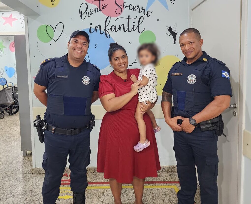 Durante patrulhamento de rotina, o Subinspetor Zanella e o GCM Mello foram surpreendidos pela mãe, que corria desesperada pedindo ajuda. Imediatamente, os guardas iniciaram a manobra de Heimlich, técnica de primeiros socorros usada em casos de engasgo. Em meio à tensão, os agentes se revezaram até que o alimento foi expelido e a respiração da menina restabelecida.