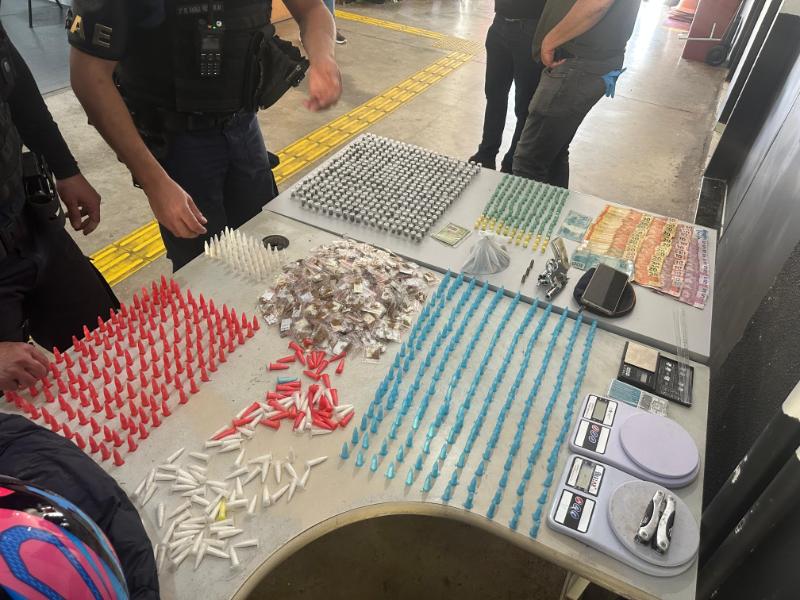 Na residência, os guardas municipais encontraram uma arma de fogo escondida no guarda-roupa e localizaram porções de drogas e dinheiro.