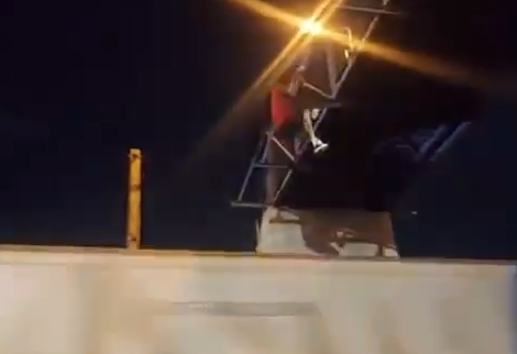 Ao perceber a aproximação da viatura, o homem correu em direção à passarela. Segundo os guardas, ao se deparar com dois vigilantes da empresa CampSeg — terceirizada da concessionária ferroviária RUMO — que estavam no local monitorando a passagem de um trem, o indivíduo pulou o guarda-corpo da ponte, subiu no lado externo da estrutura e tentou atravessar sobre os vagões da locomotiva em movimento.