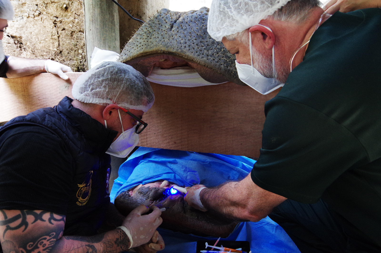 “Existem poucos relatos em hipopótamos tanto de anestesia como de tratamento dentário. Com diferentes equipes, na minha experiência, esse é o 9º animal que passa por esse tipo de procedimento”, conta Fecchio.