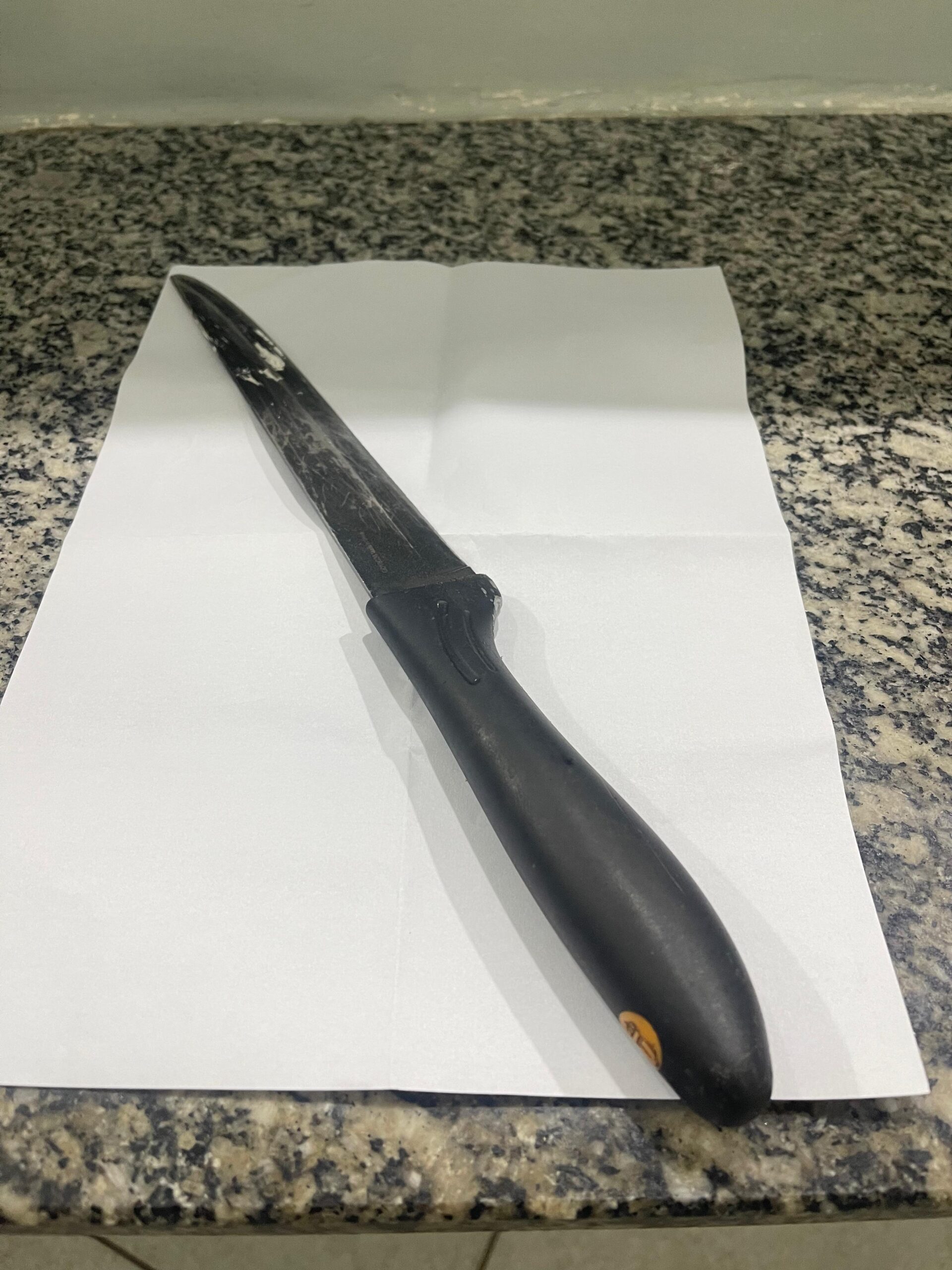 Assustada, a família acionou a Polícia Militar, que rapidamente compareceu ao local. Os policiais encontraram o homem ainda com a faca em punho e conseguiram contê-lo antes que a situação tivesse desfecho mais grave.