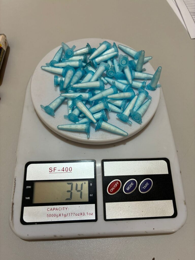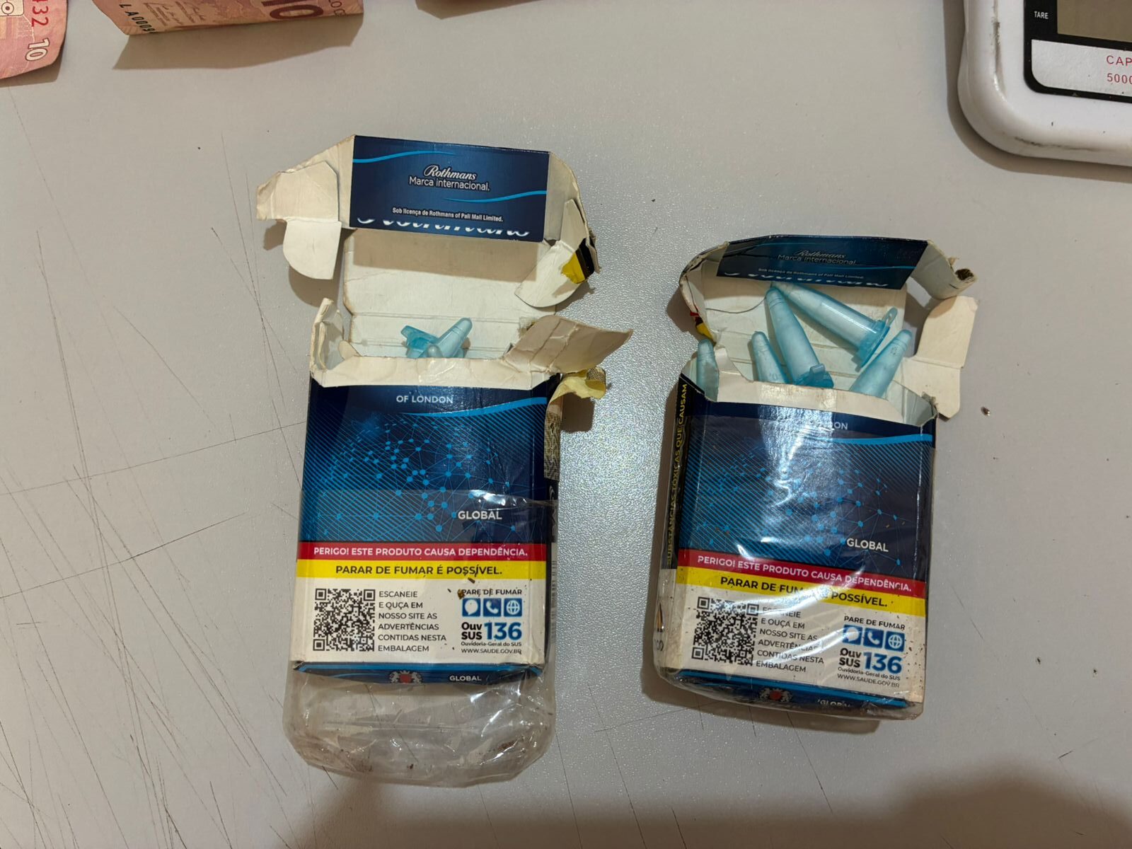 Durante a abordagem, os policiais encontraram R$ 120 em espécie com o suspeito. Em seguida, realizaram buscas no ponto onde ele havia escondido o objeto e localizaram três maços de cigarros vazios, que continham ao todo 48 eppendorfs de cocaína.