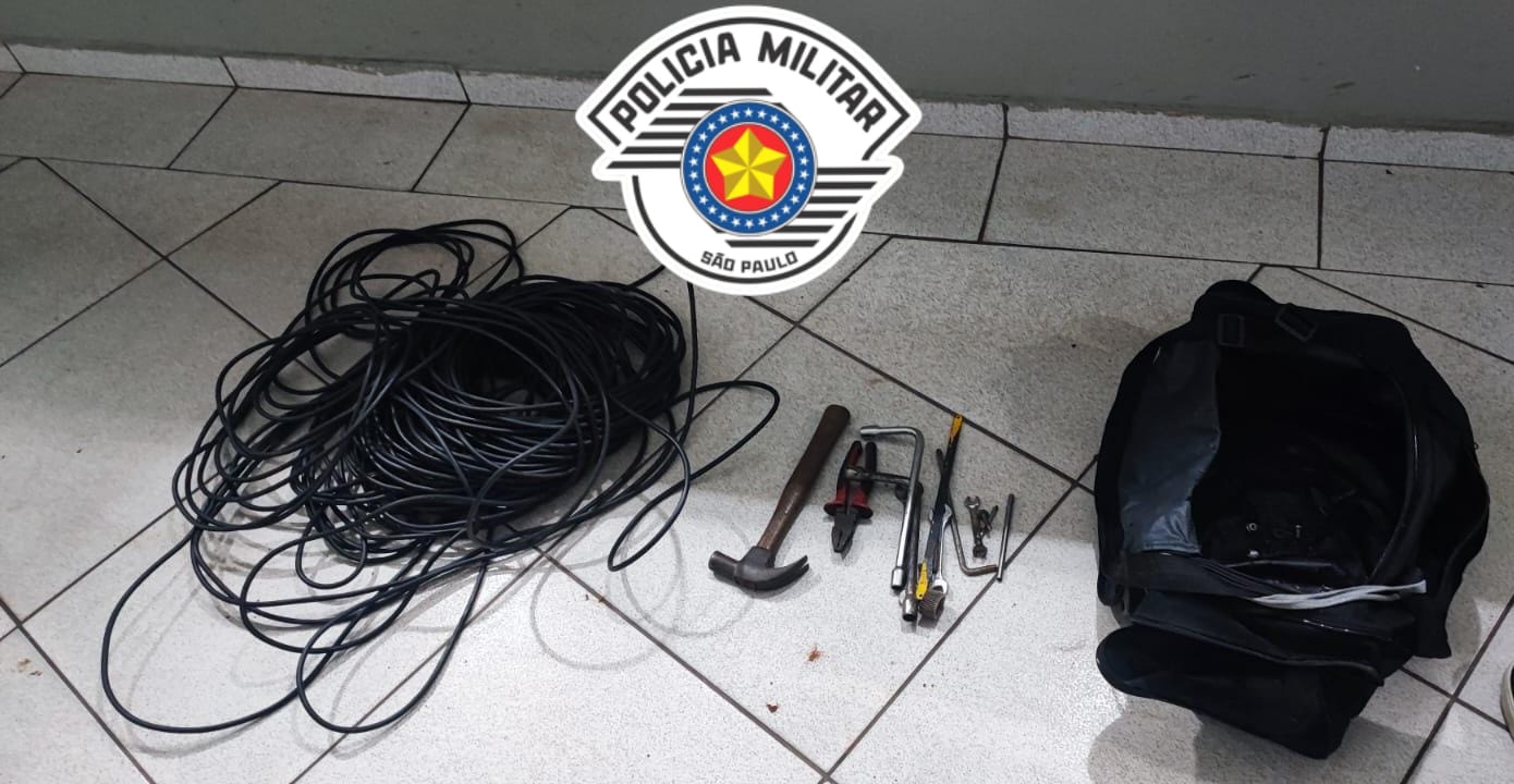 Segundo informações da PM, ao chegar ao local, os policiais avistaram três indivíduos pulando o muro da propriedade e tentando fugir para uma área de mata. Durante um acompanhamento a pé, os agentes conseguiram deter um dos suspeitos, que carregava uma mochila preta com ferramentas usadas para o arrombamento e cerca de 75 metros de cabos de 16 mm.
