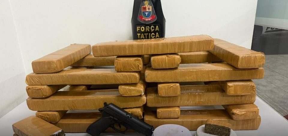 As diligências continuaram até a residência do abordado, no Jardim Bom Sucesso, onde os policiais encontraram uma caixa com diversos tabletes de maconha, balanças de precisão, um simulacro de arma de fogo e materiais usados para preparo e fracionamento dos entorpecentes.