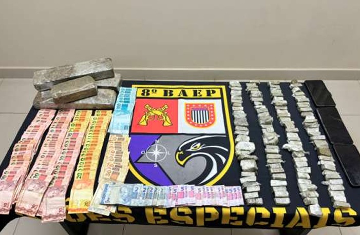 Durante a ação, a passageira, de 29 anos, tentou quebrar um celular para impedir o acesso ao conteúdo. Na vistoria do carro, foram encontrados quatro tijolos de maconha e mais de 100 porções da droga, somando 4,1 quilos. Além disso, o motorista carregava cerca de R$ 3,2 mil em dinheiro.
