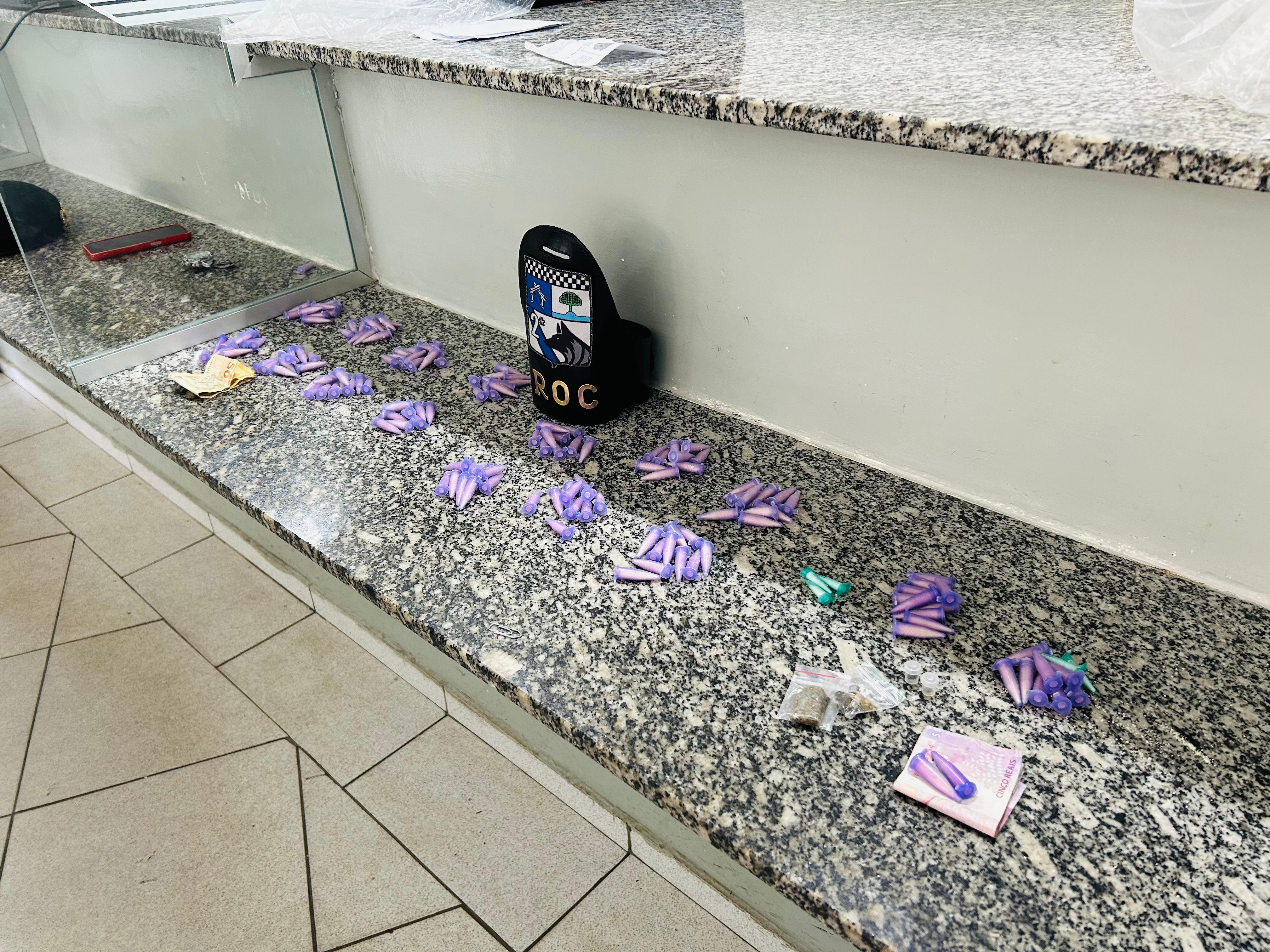 O suspeito confessou que havia mais entorpecentes escondidos nas proximidades. O cão farejador Apolo auxiliou na varredura, localizando cerca de 100 pinos de cocaína, duas porções de maconha e dois potes de haxixe. Um dos usuários também indicou outro ponto onde mais drogas estavam escondidas, totalizando 166 pinos de cocaína.