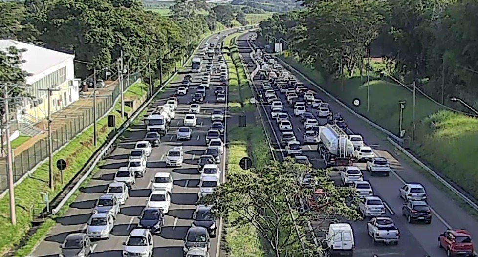 Motoristas que trafegam pela Rodovia Prof. Zeferino Vaz (SP-332) enfrentam lentidão na manhã desta terça-feira (14), na região conhecida como Tapetão, em Campinas (SP).