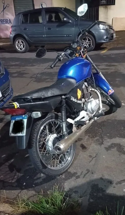 GCMs encontraram chassi suprimido, QR code irregular e condutor sem habilitação; motocicleta foi apreendida