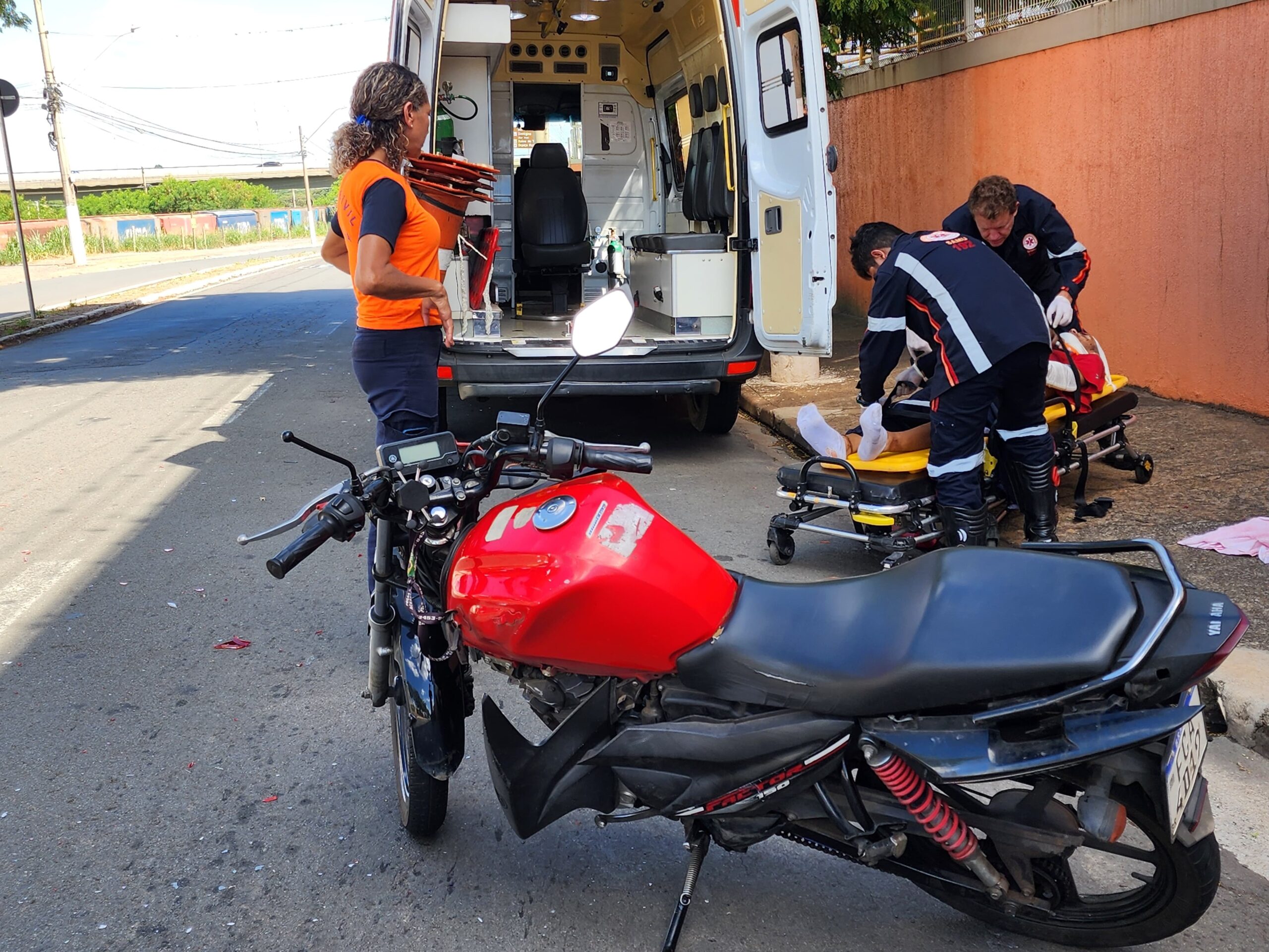 Motociclista foi socorrido pelo SAMU após colisão; acidente ocorreu no final da Avenida Campinas, em Limeira