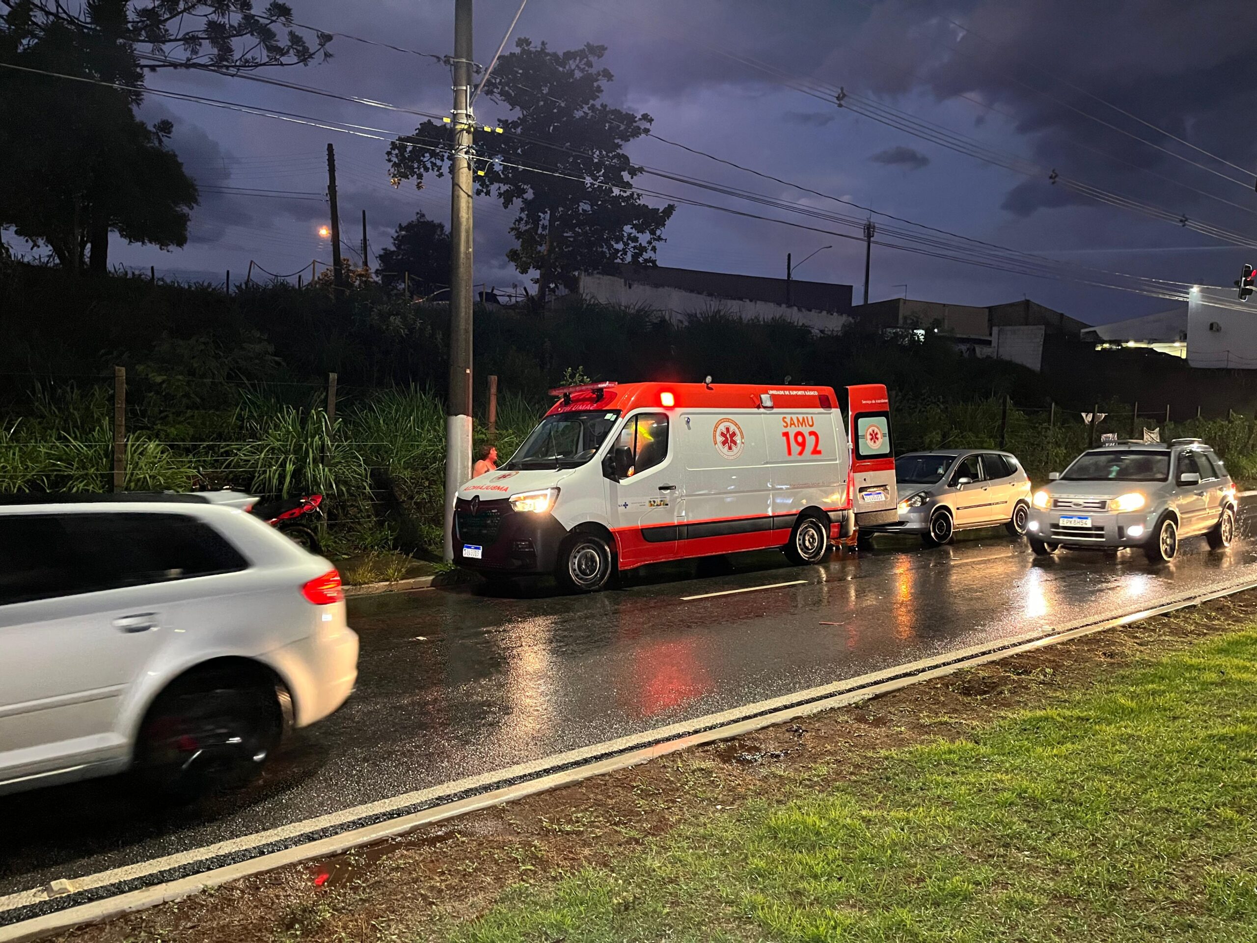 Um acidente envolvendo um carro e uma motocicleta foi registrado na noite desta segunda-feira (3), na Via Antônio Cruanes Filho, no Anel Viário, em Limeira.