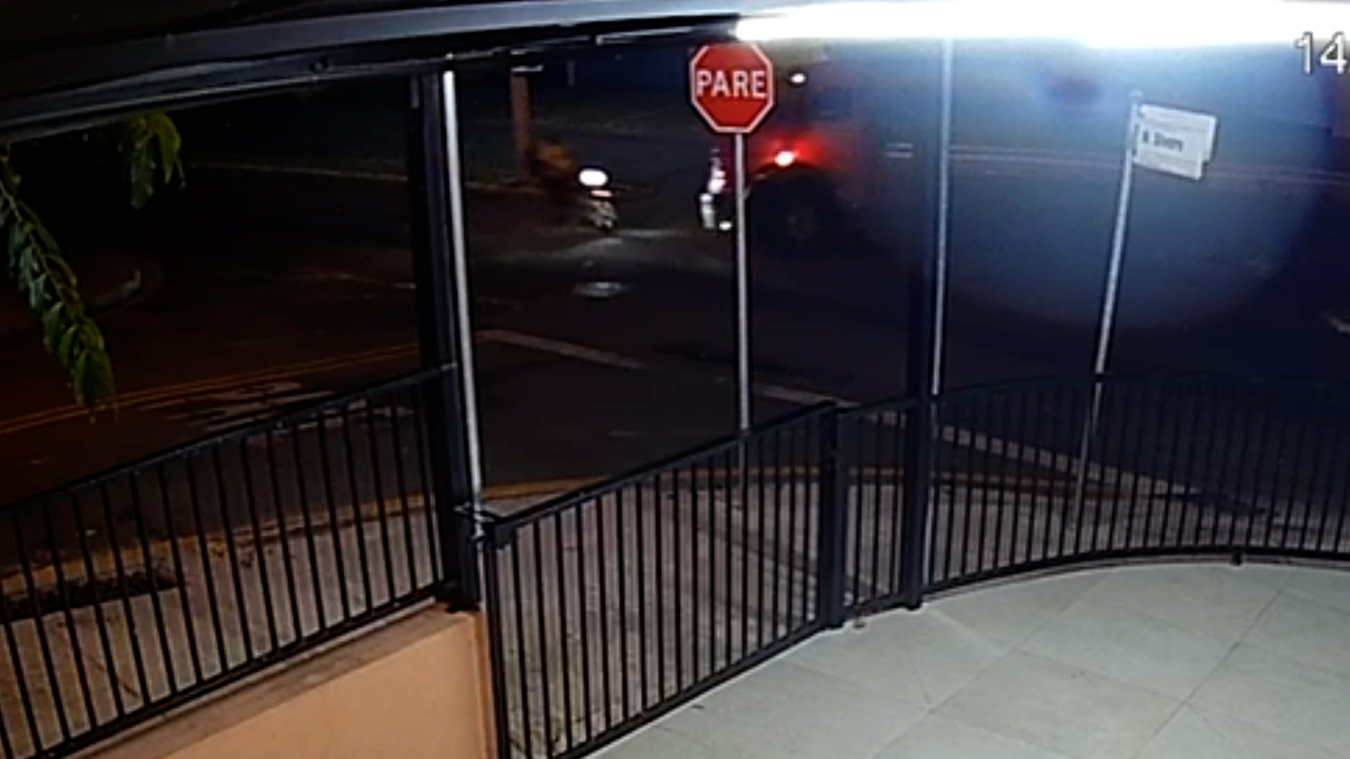 Imagens de uma câmera de segurança mostram o momento em que o caminhão realiza uma conversão e acaba interceptando a trajetória da moto, que seguia no sentido contrário.