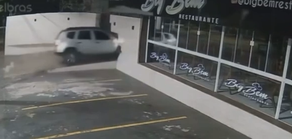 Segundo informações do Corpo de Bombeiros, dentro do veículo estavam a motorista e uma passageira. Câmeras de segurança registraram o momento da batida, que destruiu o portão e parte da parede do restaurante.
