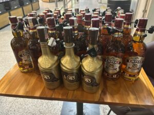No total, 54 garrafas de bebidas alcoólicas foram recuperadas, além de um celular Samsung.