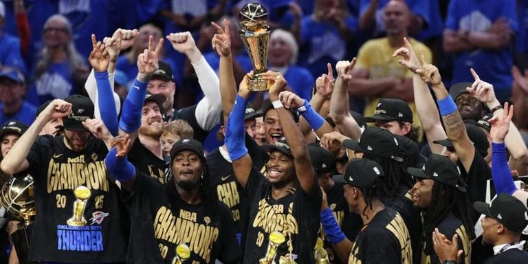 Em um jogo nervoso, o Oklahoma City Thunder derrotou o Indiana Pacers, por 103 a 91, e fechou a série final da NBA da temporada 2024/2025 com 4 a 3. O título de campeão ratificou a condição de melhor equipe do campeonato obtida durante toda a disputa e Shai Gilgeous-Alexander como o melhor jogador. Haliburton, um dos melhores jogadores dos Pacers se machucou no primeiro quarto e deixou a quadra com lesão no tendão de Aquiles.