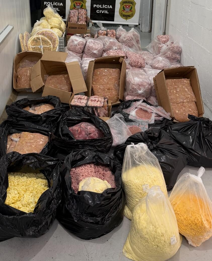 Os policiais civis foram até o local indicado, um açougue localizado na Rua do Sol, nº 482, no Jardim Alvorada, onde constataram diversas irregularidades. No interior da câmara fria, foram apreendidos cerca de 774,5 kg de carnes e frangos armazenados para a produção de hambúrgueres, além de 22 kg de pizzas.