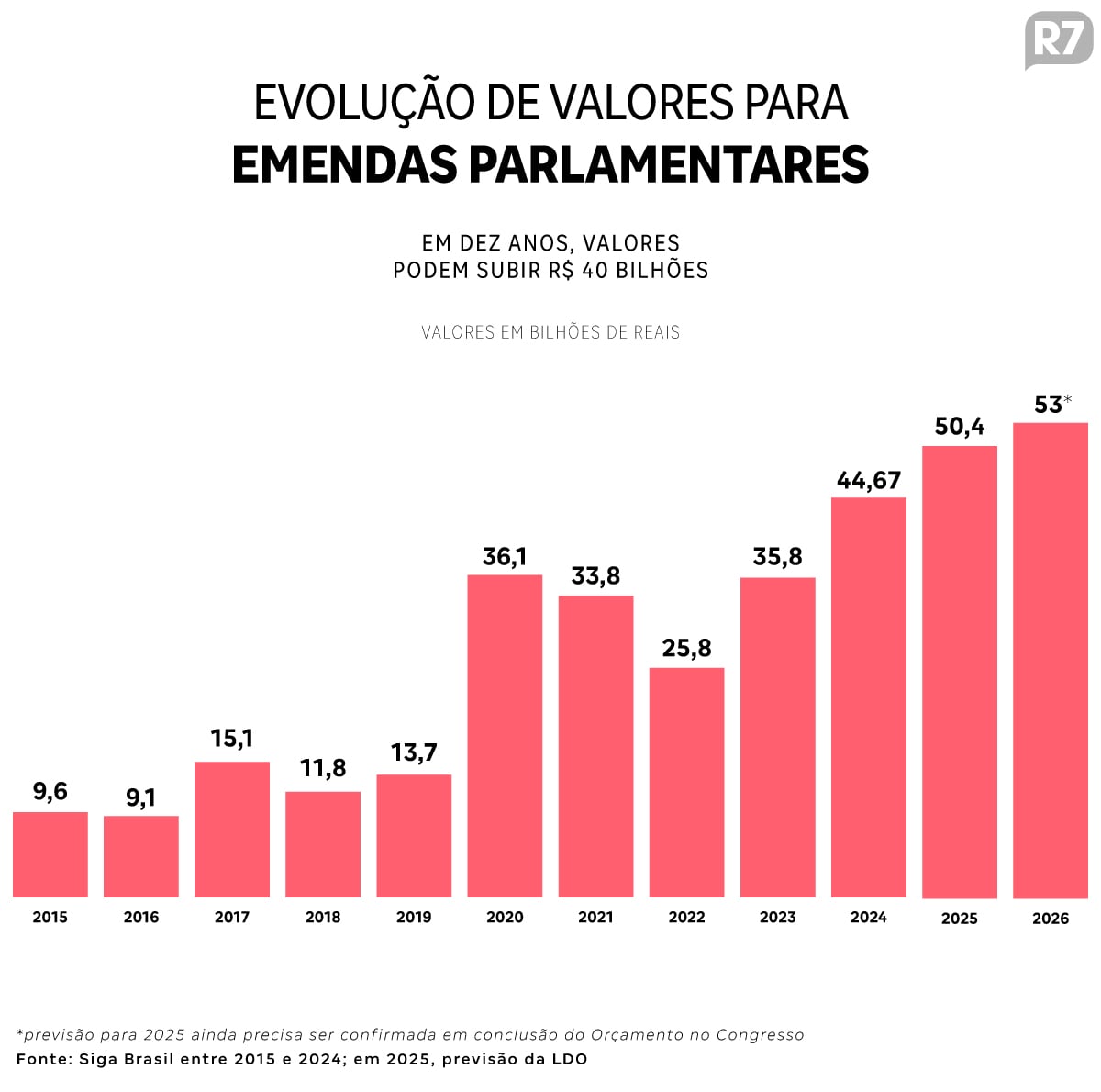 A previsão consta na LDO (Lei das Diretrizes Orçamentárias), aprovada pelo Congresso na última quinta-feira (4). O valor também é considerado certo nas negociações da reta final junto ao Planalto, segundo apurou o R7. Eventuais mudanças ainda podem ser aplicadas até a conclusão do Orçamento de 2026.