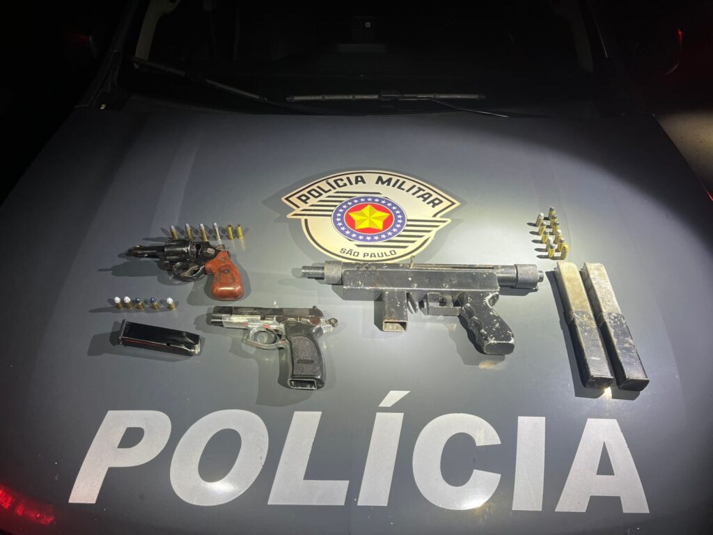 Dentro do carro, os policiais encontraram três armas de fogo, um revólver calibre 38, uma 9 mm e uma metralhadora
