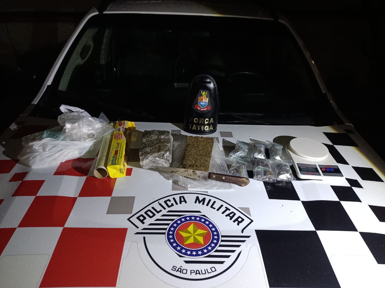 Segundo informações da PM, a ação ocorreu após denúncia anônima que indicava um indivíduo como responsável pela distribuição de drogas na região. Ao chegar ao endereço informado, os policiais abordaram o pai do suspeito e localizaram o próprio indiciado na garagem da residência.